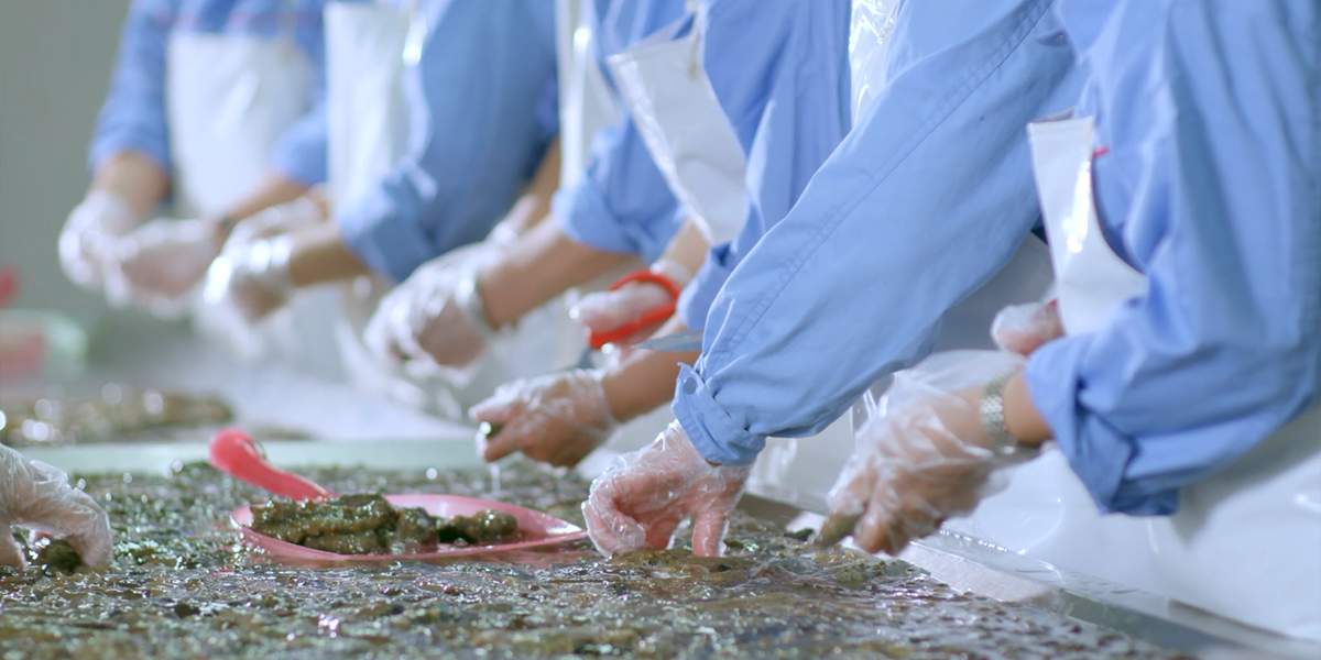建設(shè)標(biāo)準(zhǔn)化海參加工基地。2007年興建遼西第一家擁有國(guó)內(nèi)先進(jìn)設(shè)備的水產(chǎn)品加工基地,至今擁有海參初加工、海參精加工兩大生產(chǎn)加工車間。其中初加工車間日加工量達(dá)20萬(wàn)斤,年加工鮮活海參2000萬(wàn)斤,實(shí)現(xiàn)海參原料加工規(guī)?;a(chǎn);精加工車間生產(chǎn)線改造升級(jí)后,年加工即食海參100萬(wàn)斤,同時(shí)提升海參精加工能力及品類,突破傳統(tǒng)海參產(chǎn)品。